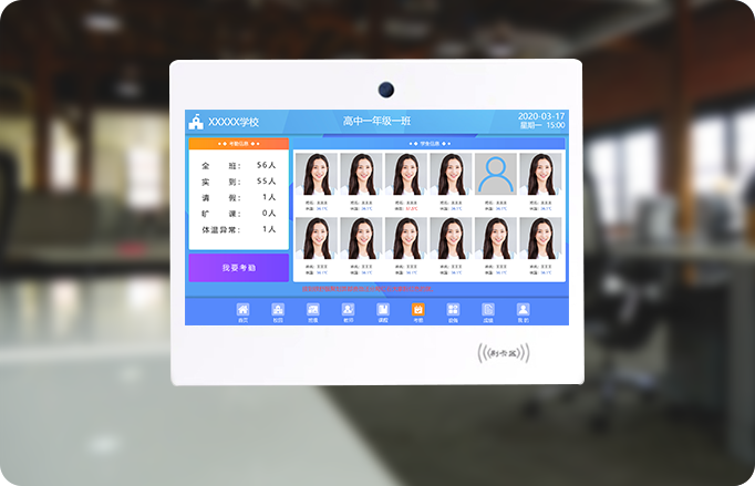 到了考勤時(shí)間點(diǎn),電子班牌自動(dòng)開啟攝像頭進(jìn)行人臉識(shí)別工作,記錄全班考勤人數(shù),